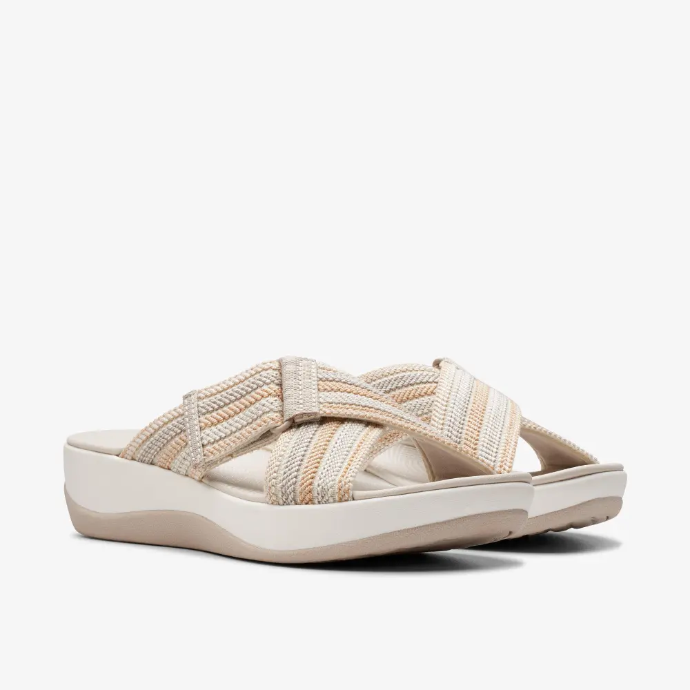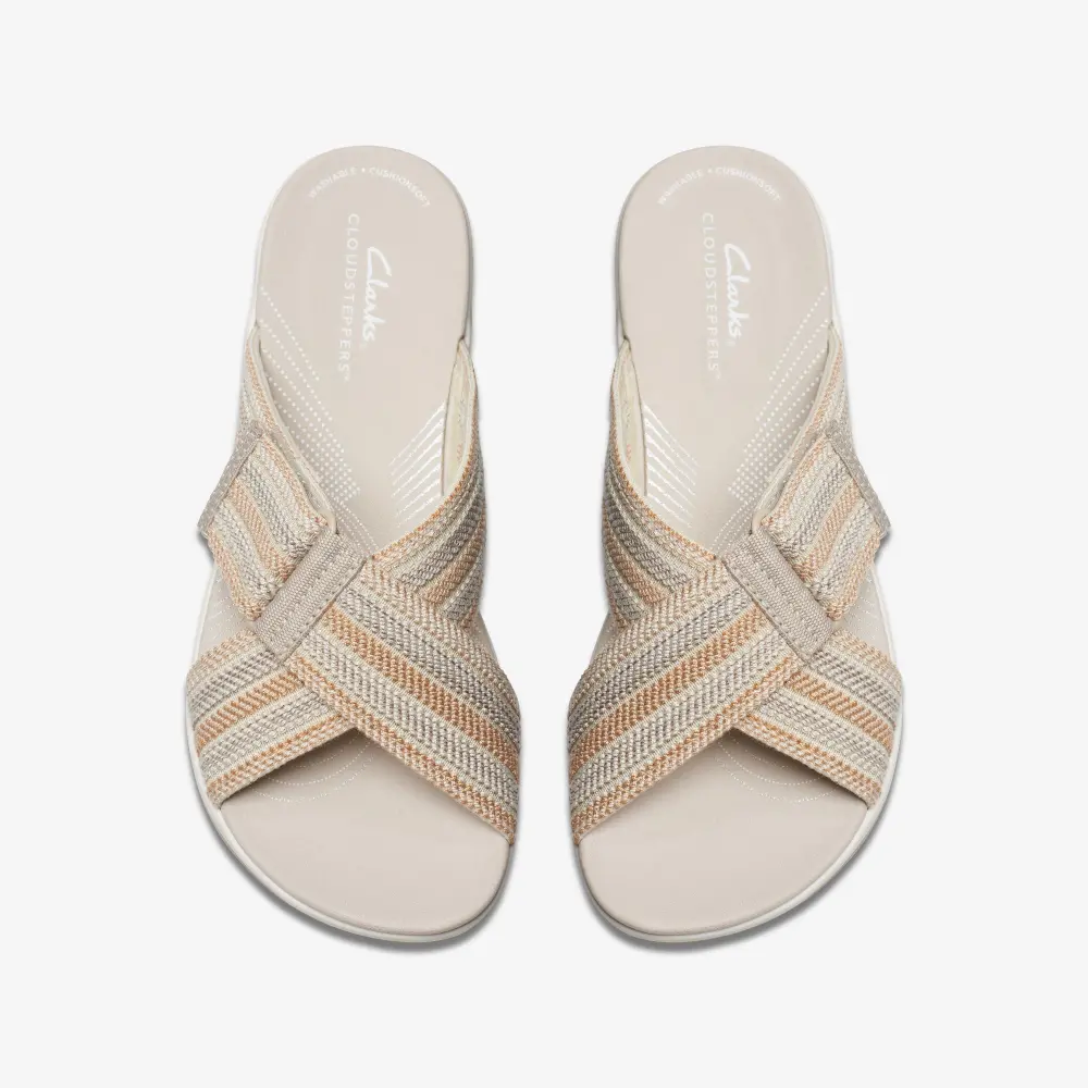 Mit dem Arla Wave, dem Neuzugang unserer Cloudsteppers™ Kollektion, reisen Sie diesen Sommer leicht und unbeschwert. Das weiche, beigefarbene Obermaterial mit Riemchen und Streifen sowie einem modernen Schnallendetail umschließt den Fuß perfekt, während das Cushion Soft™ Fußbett und das geschwungene Design für optimalen Tragekomfort sorgen. Die perfekte Alternative zum Barfußlaufen in diesem Sommer.