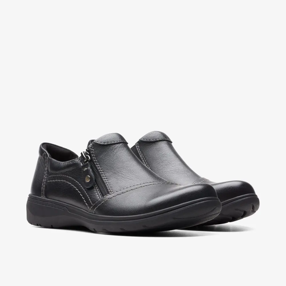 Unser zuverlässiger Alltagsschuh Carleigh Ray steht für höchsten Tragekomfort und ist perfekt für den Arbeitsalltag und ein aktives Wochenende. Das strapazierfähige Obermaterial aus schwarzem Leder umschließt den Fuß optimal, während unsere bewährte Dämpfung und die griffige Sohle für sicheren Halt sorgen.