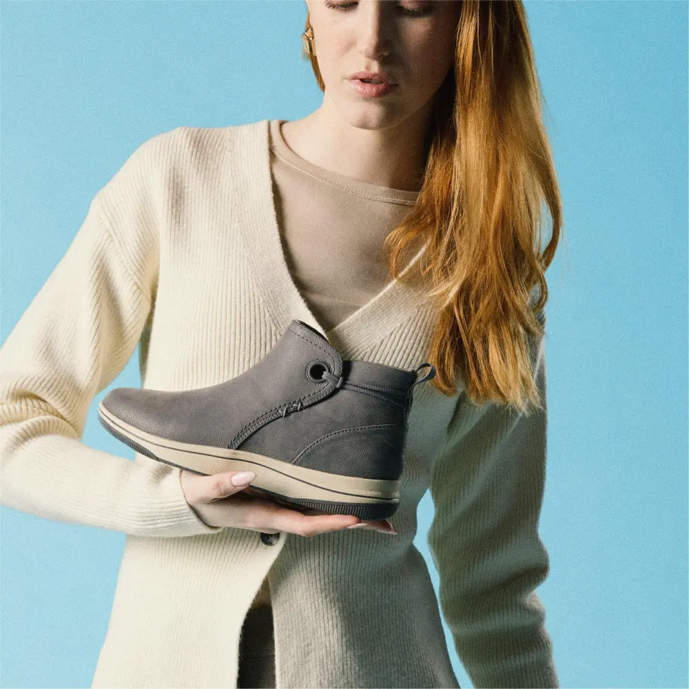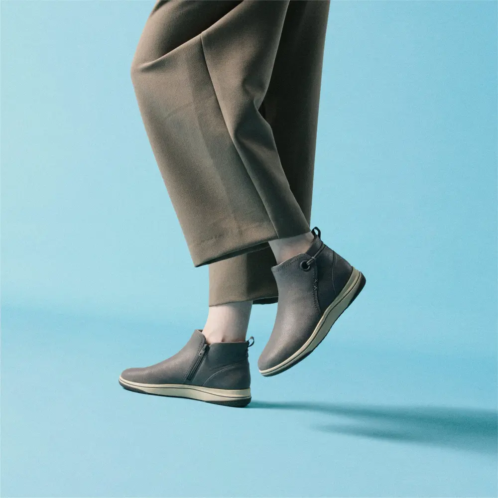 - Der Reißverschluss an der Innenseite ermöglicht ein einfaches Anziehen, während der elastische Knöchelriemen für sicheren und flexiblen Halt sorgt