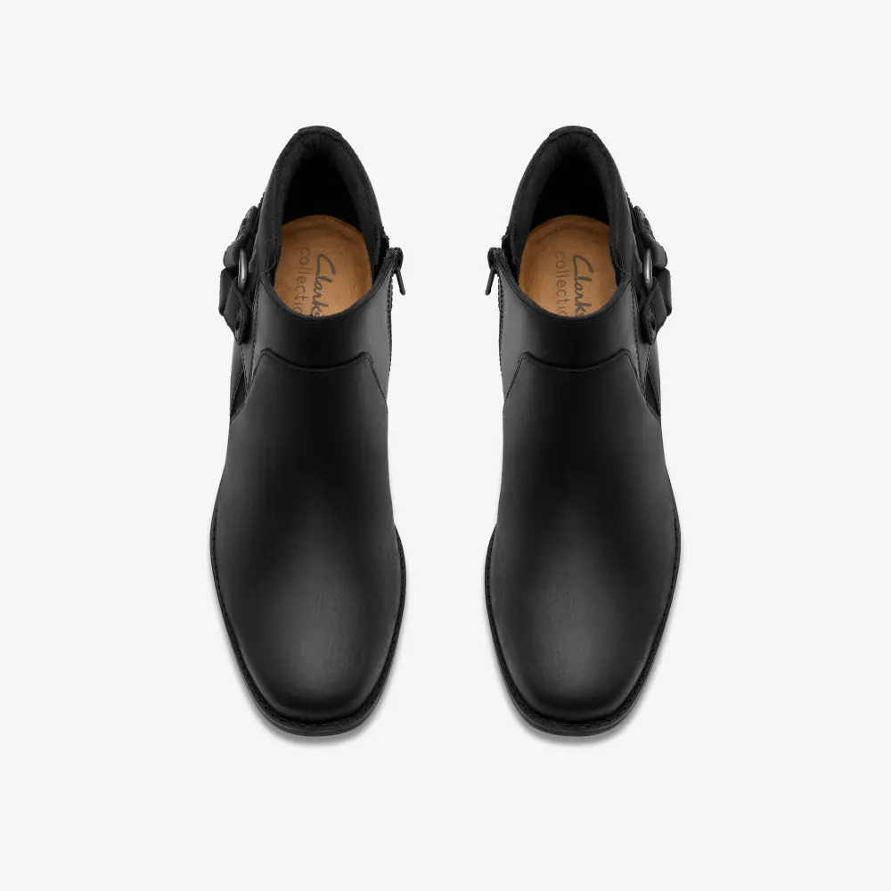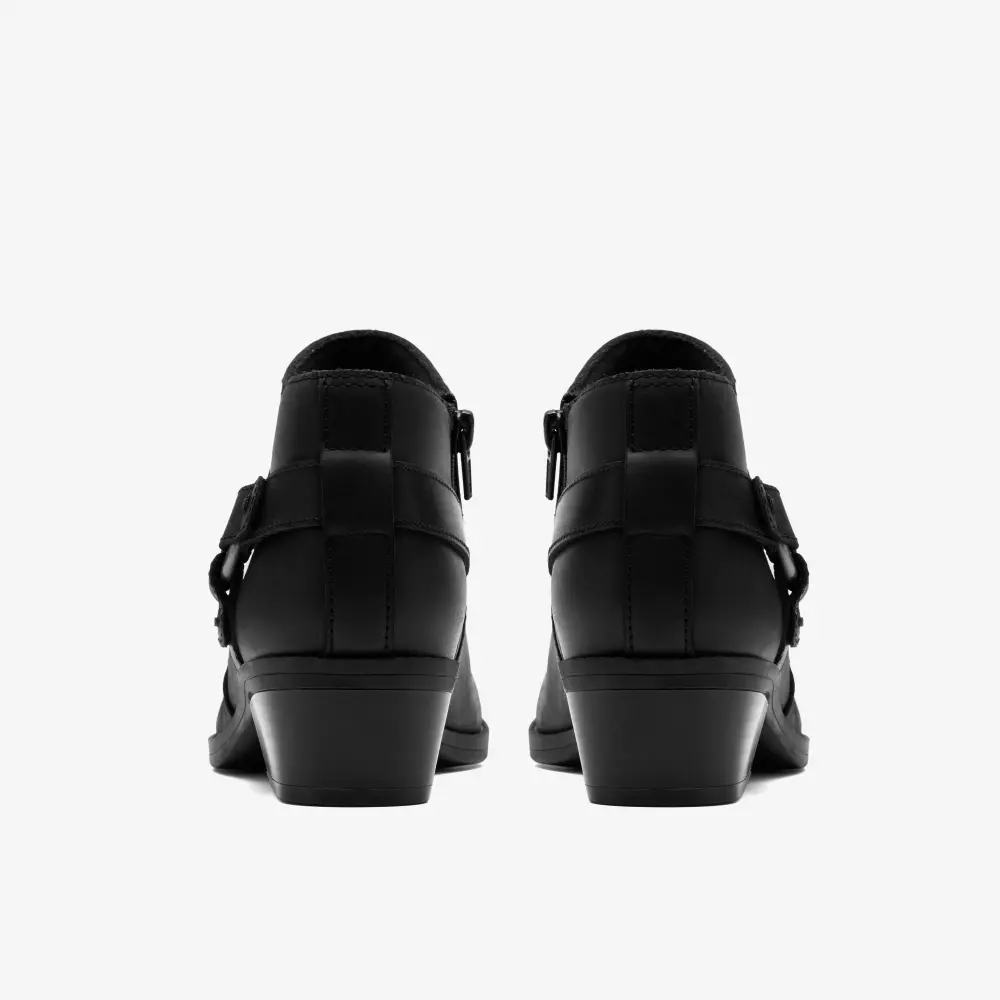- Hochwertiges, schwarzes, geöltes Leder-Obermaterial mit Schnallen-Akzent