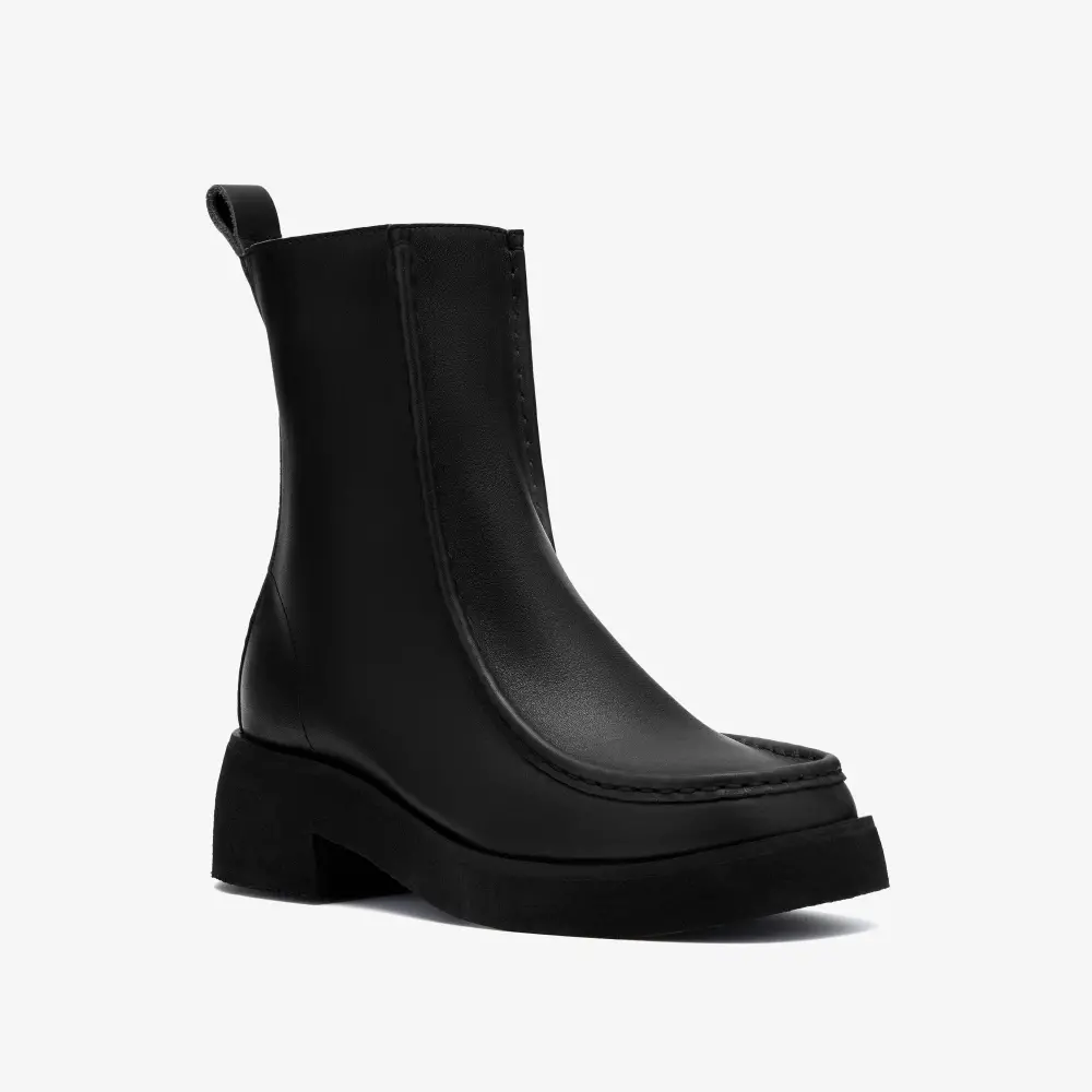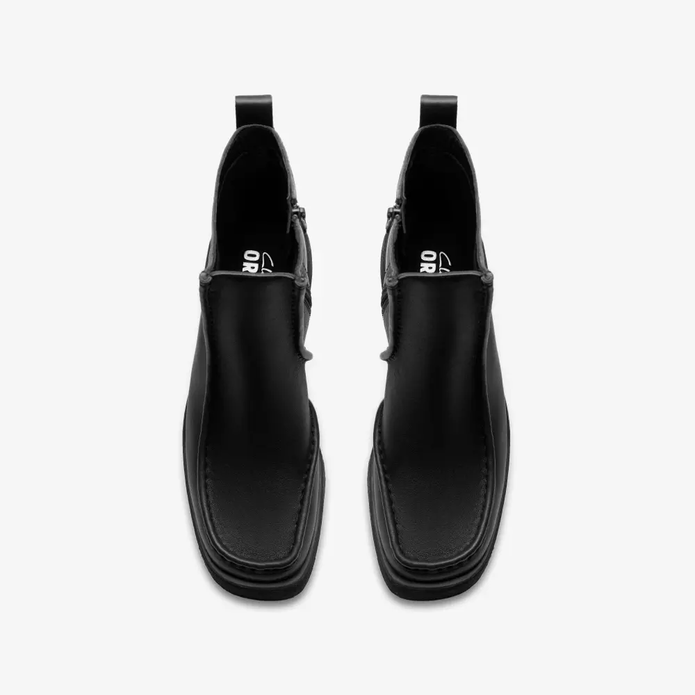 Wir präsentieren den Effery Zip, eine schicke und moderne Interpretation des klassischen Wallabee™-Stiefels, entworfen für die moderne Frau. Dieser stilvolle Stiefel verleiht Ihrem Look mit seinem geschwungenen Absatz und dem leichten Krepp-Obermaterial eine besondere Note und ist somit die perfekte Wahl für Komfort und Eleganz. Der aus schwarzem Leder gefertigte Effery Zip vereint Strapazierfähigkeit mit Eleganz. Das Wallabee™-Design am Vorderfuß besticht durch eine asymmetrische Naht an der Innenseite des Beins, die diesem vielseitigen Stiefel eine einzigartige Note verleiht. Der Effery Zip ist besonders praktisch: Er verfügt über eine Anziehschlaufe an der Ferse für einfaches An- und Ausziehen sowie einen farblich abgestimmten Reißverschluss an der Innenseite für ein nahtloses Finish. Mit dem Effery Zip, der modernes Design mit der Tradition von Clarks Originals vereint, starten Sie selbstbewusst und stilvoll in die neue Saison. Obermaterial aus Leder. Zuglasche an der Ferse. Tonaler Reißverschluss innen. Wallabee™-Design am Vorderfuß. Asymmetrische Naht an der Beininnenseite. Das metallisch geprägte Clarks Originals-Logo auf der Socke.