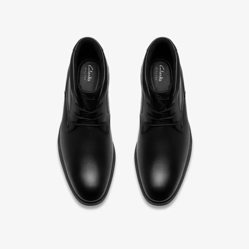 Der Schnürschuh Eldredge Mid aus glattem, schwarzem Leder besticht durch seinen klassischen, hochwertigen Look. Die elegante Silhouette zeichnet sich durch sorgfältig gearbeitete Ziernähte, eine leicht geschwungene Zehenpartie und ein weiches, federndes Fußbett aus, das Ihnen ein federleichtes Tragegefühl bietet. Die rutschfeste Gummisohle sorgt für sicheren Halt bei Meetings und After-Work-Veranstaltungen.