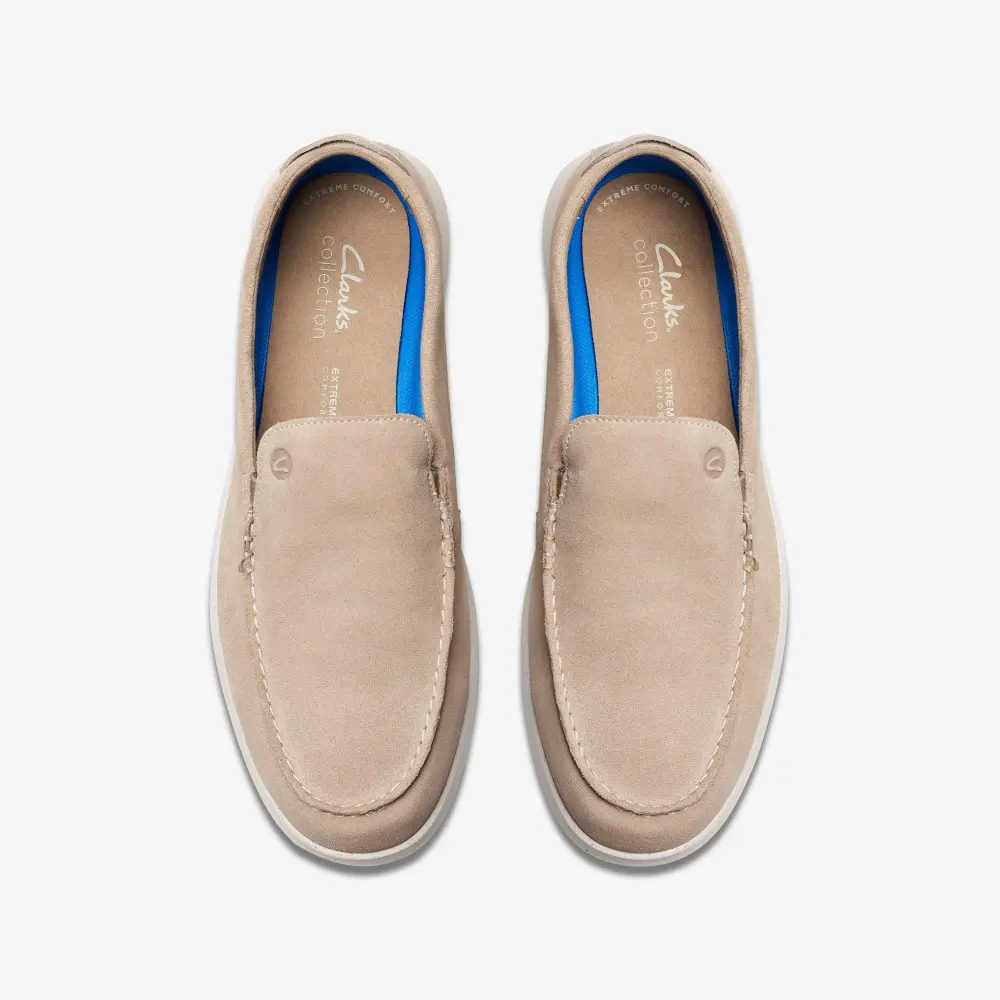 Für ein ultimatives Barfußgefühl ist unser Alltagsheld Flexway Step der perfekte Begleiter für die Übergangszeit. Dank seiner faltbaren, ungefütterten und leichten Lederkonstruktion lässt er sich ideal verstauen, während die flexible Gummisohle für sichere und flüssige Schritte sorgt – egal ob auf Reisen oder zu Hause. Barfußfreundlich, faltbar, ungefüttert, Obermaterial aus Wildleder. Strapazierfähige, griffige Gummisohle mit Flexkerben passt sich den natürlichen Bewegungen des Fußes an. Das ikonische Clarks-Handschriftmotiv ziert die Sohle.