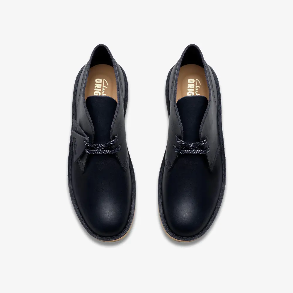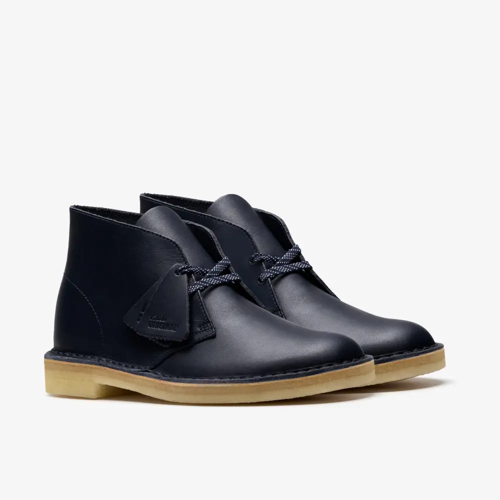 Kulturelles Prestige und Design-DNA: Kein Schuh ist wie der Clarks Originals Desert Boot. In den 50er-Jahren geboren, löste sein minimalistischer, progressiver Stil eine weltweite Schuhrevolution aus. Und jedes Designdetail ist bis heute dem ersten bahnbrechenden Paar treu geblieben. Die klaren, präzisen Linien des Stiefels werden durch hochwertiges marineblaues Leder unterstrichen und mit einem unkomplizierten Schnürverschluss abgerundet. Die authentische Kreppsohle vervollständigt diese unverwechselbare Silhouette. Sofort erkennbar, für immer ikonisch. Ein echtes Original.
