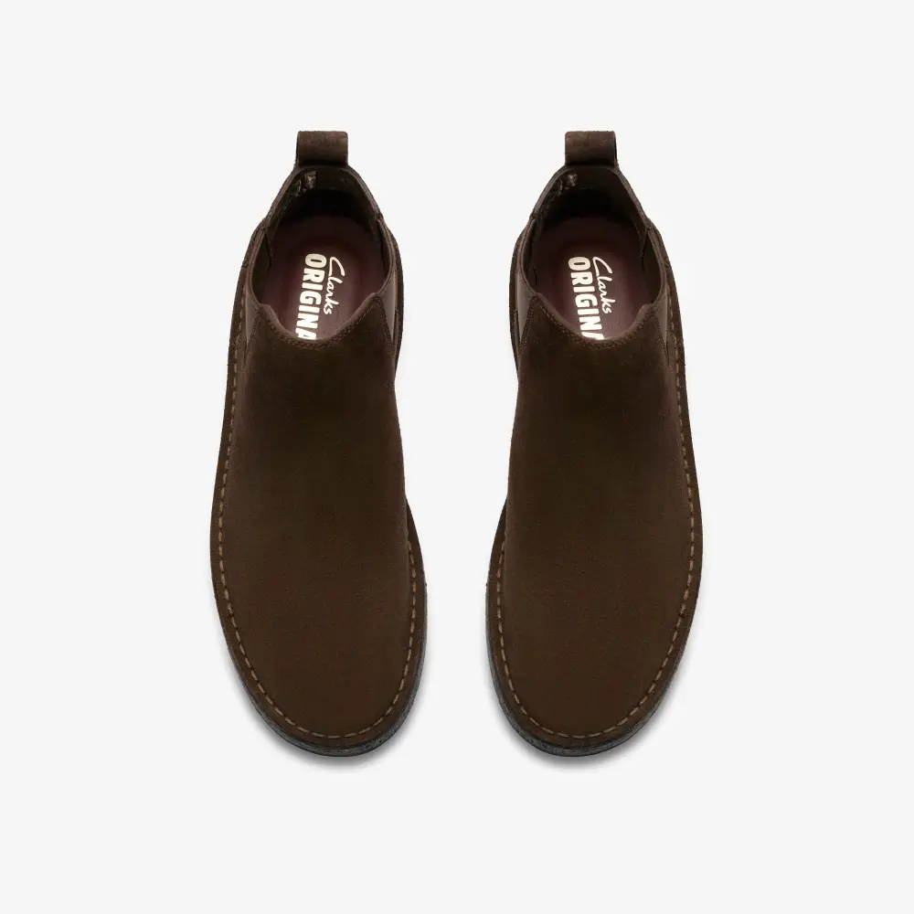 Innen verleiht das hitzegeprägte, metallisch-goldene Clarks Originals™-Logo auf der Socke dem Schuh den letzten Schliff, während der Steads-Stempel im inneren Viertel die Premiumqualität unterstreicht.