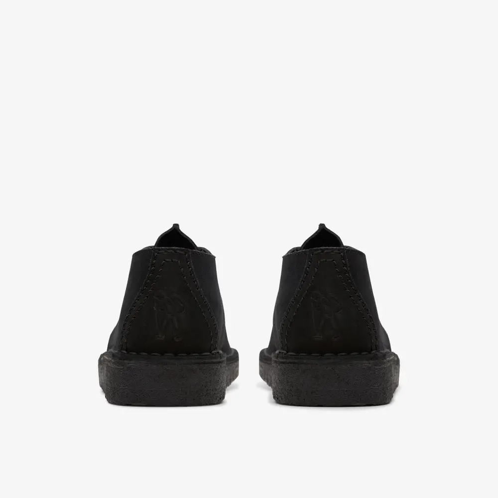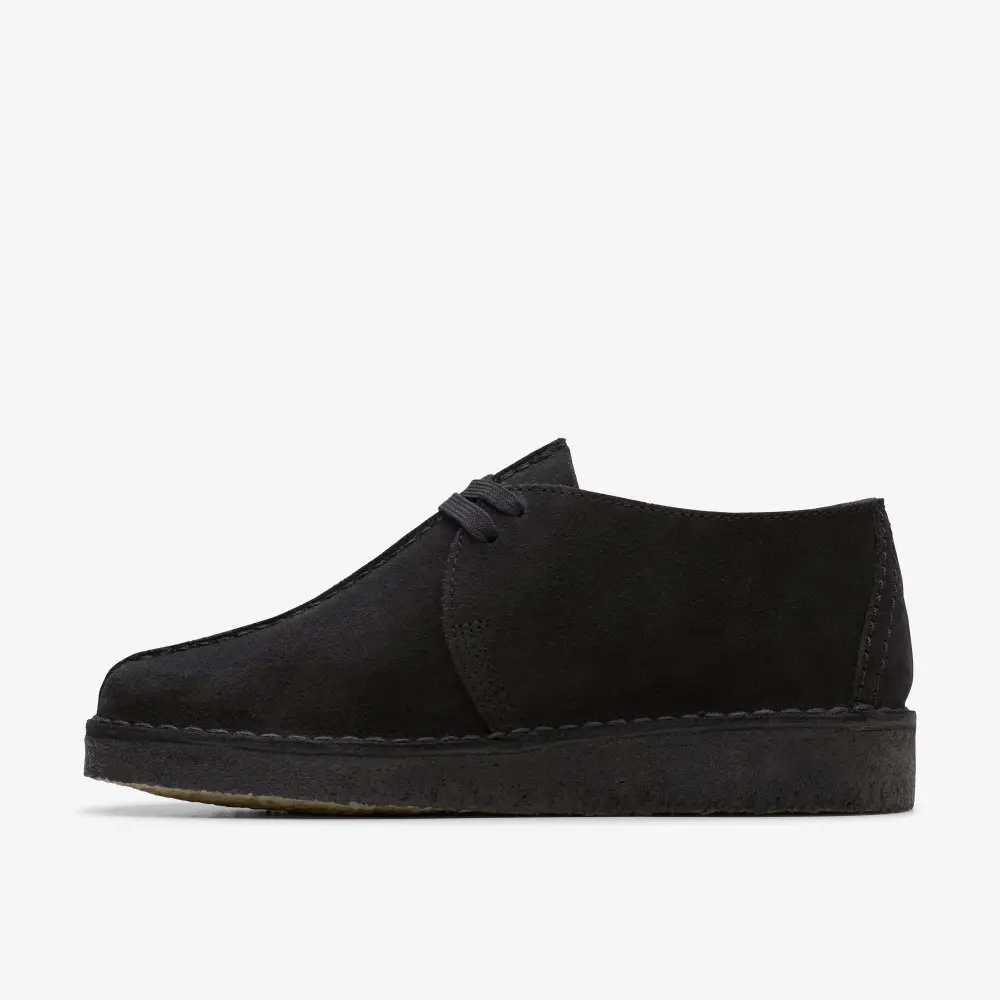 Der Desert Trek, eine Ikone für jeden Tag, kehrt in zeitlosem Schwarz zurück und ist bereit für eine Saison voller vielseitiger Stylingmöglichkeiten. Das butterweiche Wildleder-Obermaterial bildet einen perfekten Kontrast zur Kreppsohle, während flache Schnürsenkel und unsere klassischen Anhänger für einen lässigen Look sorgen.