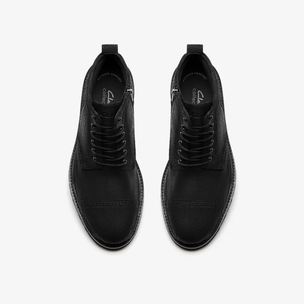 - Hochwertiges Obermaterial aus schwarzem Wachsleder