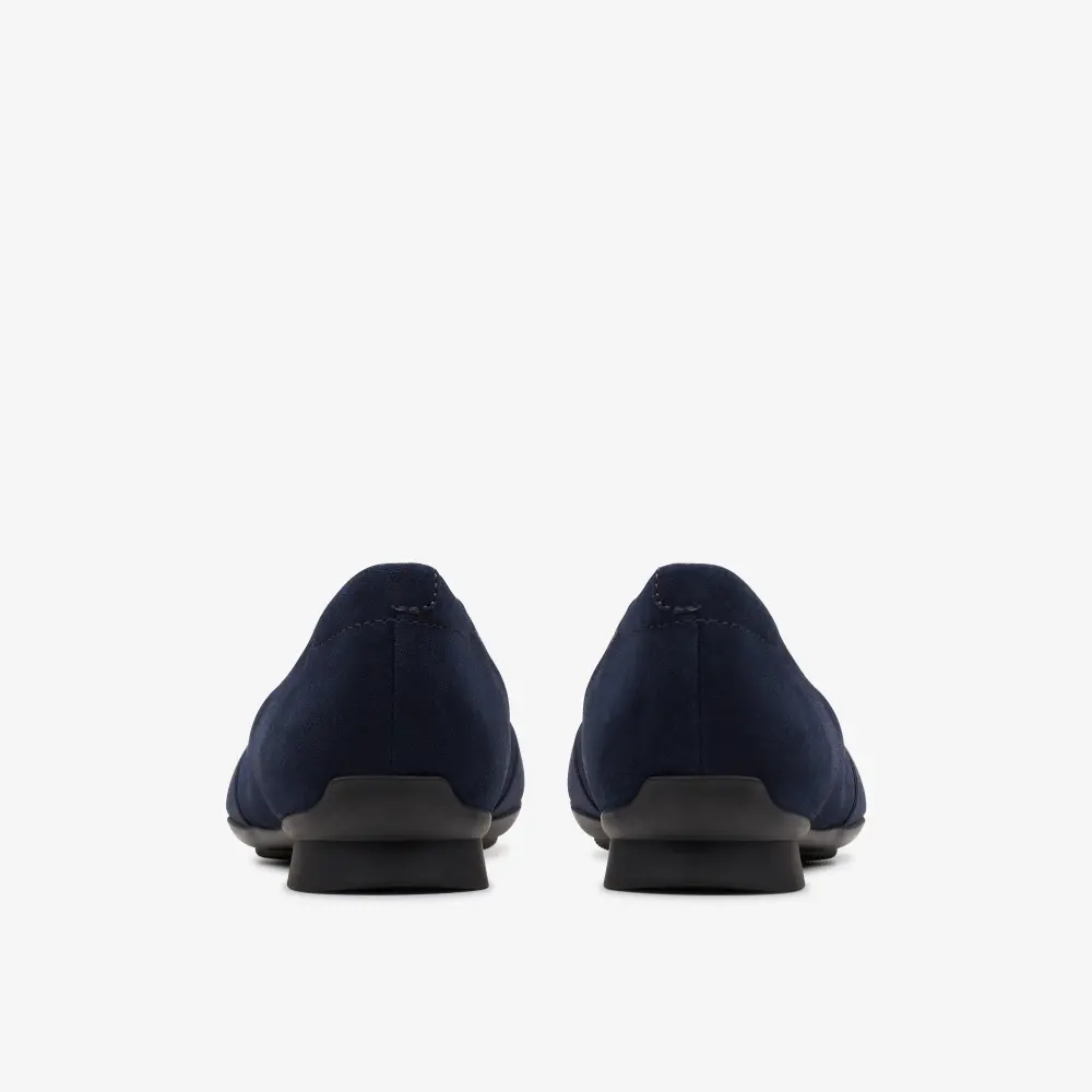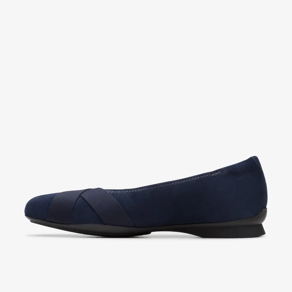 Wir präsentieren Jazmynn Gem – einen modernen Klassiker, einen komfortablen, vom Ballerina-Stil inspirierten Schuh, der für ganztägigen Tragekomfort konzipiert wurde. Gefertigt aus weichen, hochwertigen Materialien, verfügt er über eine TPR-Sohle für Halt und Flexibilität sowie ein weiches Ultimate Comfort PU-Schaum-Fußbett für ganztägigen Komfort und Unterstützung. Obermaterial aus hochwertigem, marineblauem Wildleder mit synthetischen Besätzen. Das Ultimate Comfort-Schaum-Fußbett bietet ganztägigen Halt. Atmungsaktives Mikrofaser-Fußbettfutter. Die flexible TPR-Sohle (thermoplastischer Gummi) sorgt für optimale Traktion. Absatzhöhe: 15 mm.
