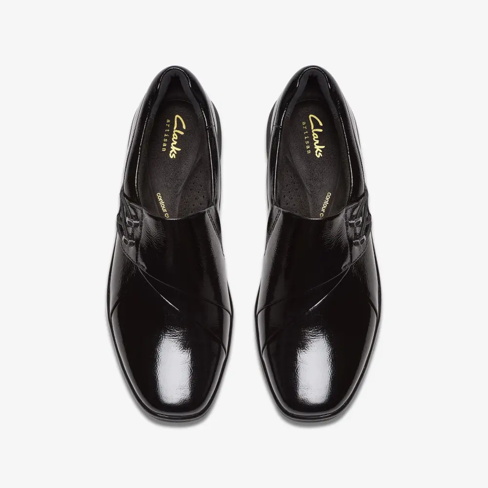 - Obermaterial aus hochwertigem schwarzem Lackleder