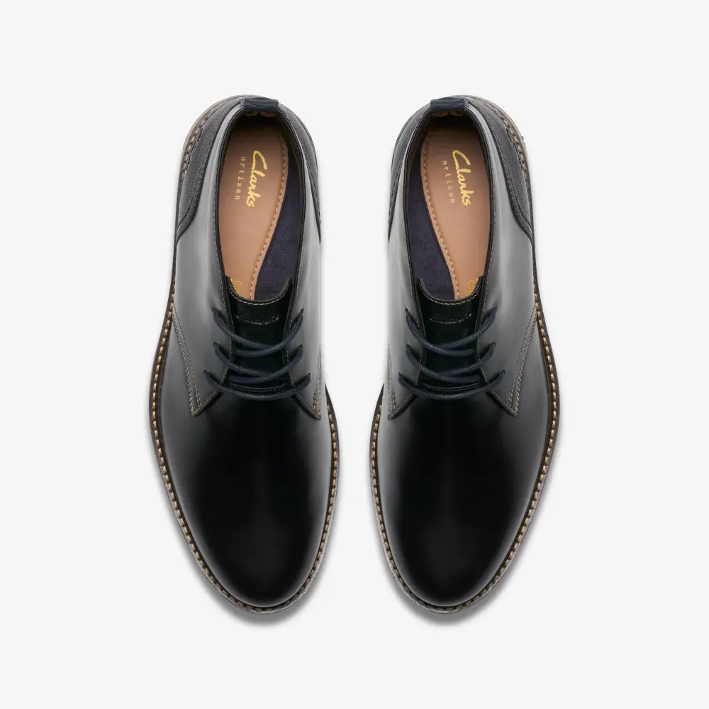 Der Monahan Chukka ist ein klassischer Freizeitstiefel mit einem Obermaterial aus glattem, schwarzem Leder, der allen Anforderungen des Tages gewachsen ist. Dank des äußerst stützenden EVA-Fußbetts und der Zwischensohle bietet dieses vielseitige Modell optimalen Tragekomfort. Die sportlich inspirierte, griffige Gummisohle sorgt für ein federleichtes und sicheres Laufgefühl.