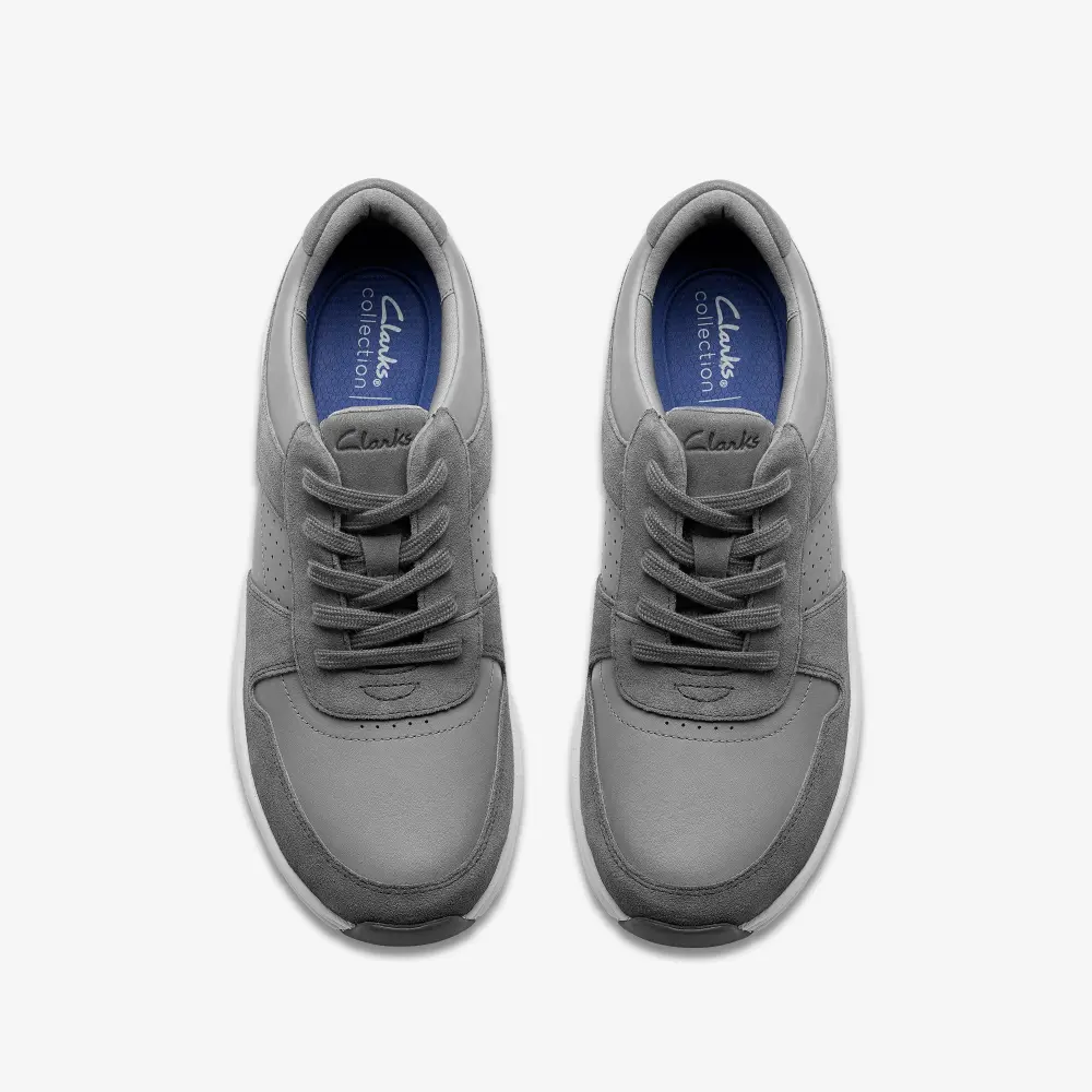 - Hochwertiges graues Obermaterial aus Lederkombination