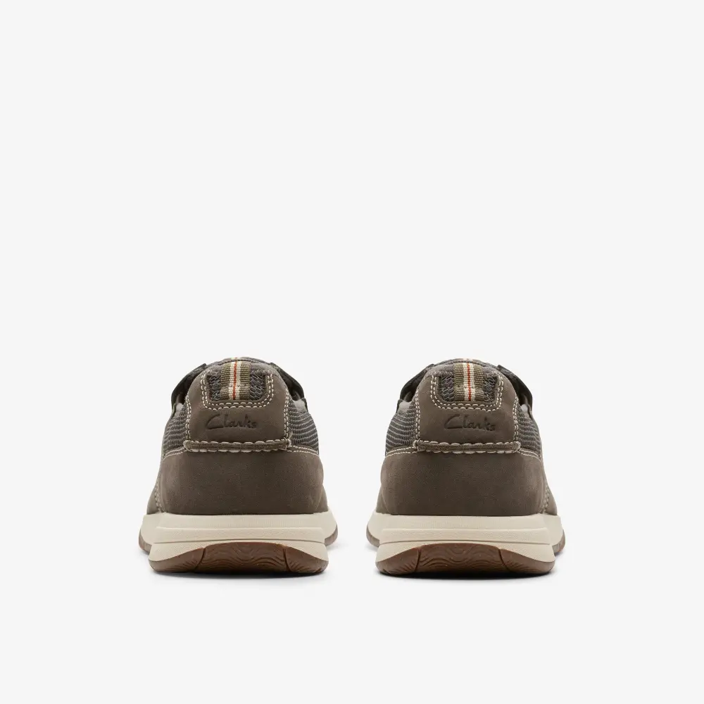Der Sailview Step ist ein lässiger, vom maritimen Stil inspirierter Slipper, der sich perfekt für Grillpartys im Garten und Familienurlaube eignet. Die rutschfeste Sohle sorgt für optimale Traktion – ideal für Deck und Land! Ziernähte und das geprägte Logo runden das Design ab und verleihen ihm einen authentischen, hochwertigen Look, wie man ihn nur von Clarks kennt. Das strapazierfähige Obermaterial aus taupefarbenem Nubukleder bietet sicheren Halt und erleichtert das An- und Ausziehen. Die rutschfeste, profilierte Sohle sorgt für sicheren Halt auch bei Nässe.