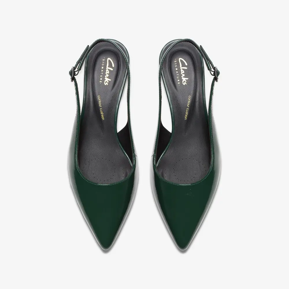 Der Zarey Sling ist eine moderne Interpretation eines klassischen Schuhs und passt perfekt zu jeder Garderobe. Er kombiniert einen formschönen Absatz mit einer eleganten, spitzen Zehenpartie und besticht durch hochwertiges dunkelgrünes Leder für einen edlen Look. Dank des Contour Cushion-Fußbetts und der flexiblen Gummisohle bietet er rund um die Uhr optimalen Tragekomfort.